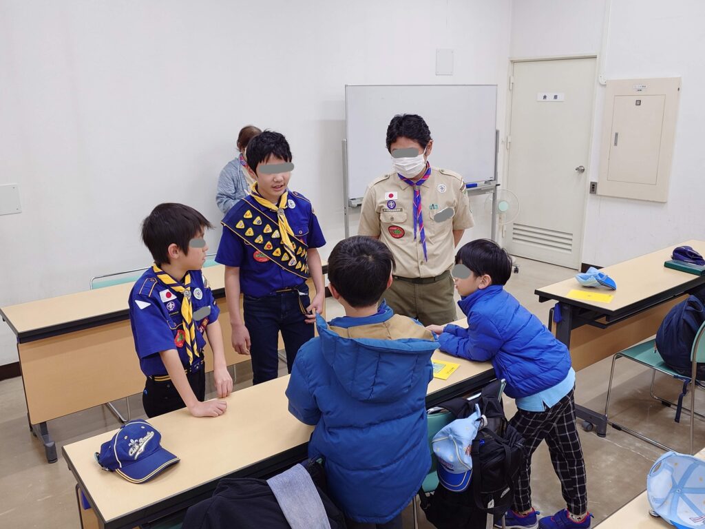 くまスカウト(小5)も、4月からはボーイ隊へ進みます。 ボーイ隊のお兄さん達に交じって、ボーイ隊での活動も始まりました。 ボーイ隊への準備をするための過程を「月の輪」と呼んでいます。(西東京第一団では、「月の輪」集会は、ボーイ隊のリーダーの指導のもとに行います。)