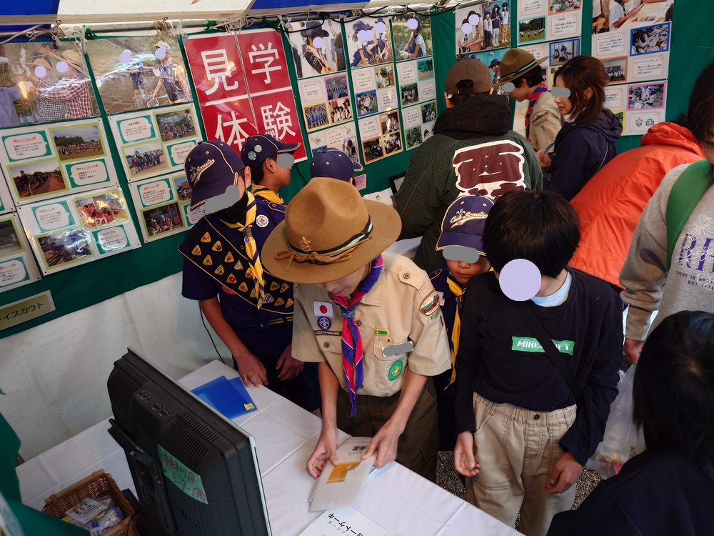 当日は小雨交じりの天気の中、たくさんのお友達がブースに遊びに来てくださり、非常に賑やかな一日となりました。ボーイ隊のお兄さんを中心にゲームの案内役を務め、遊びに来てくれたお友達と楽しく交流することができました。また、カブ隊のメンバーも、日頃行っている活動内容を熱心に説明し、多くの方にボーイスカウトの楽しさや魅力を伝えることができました。