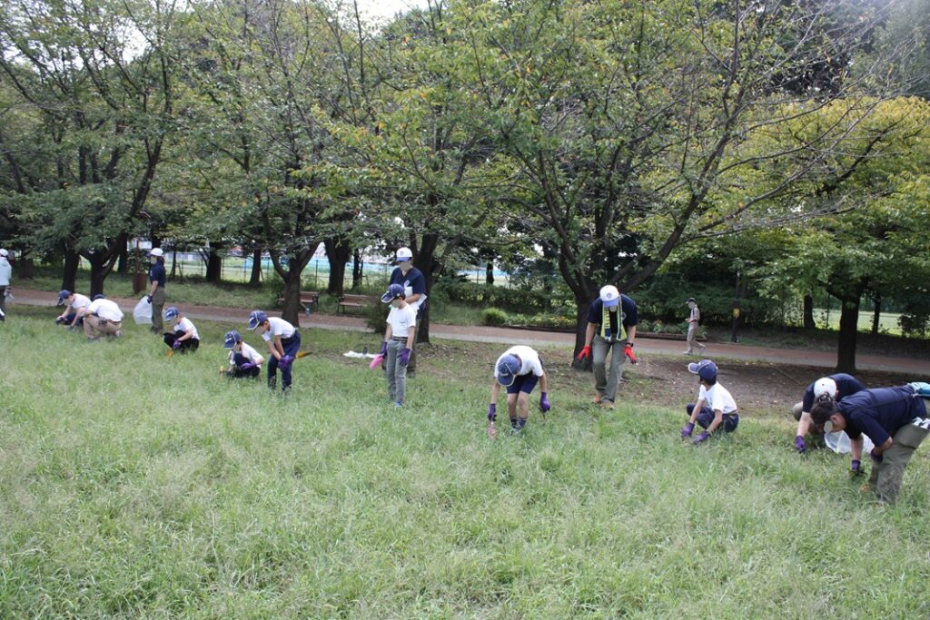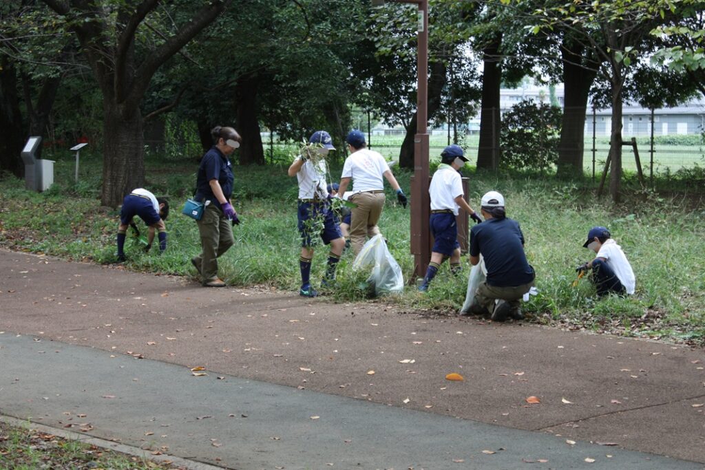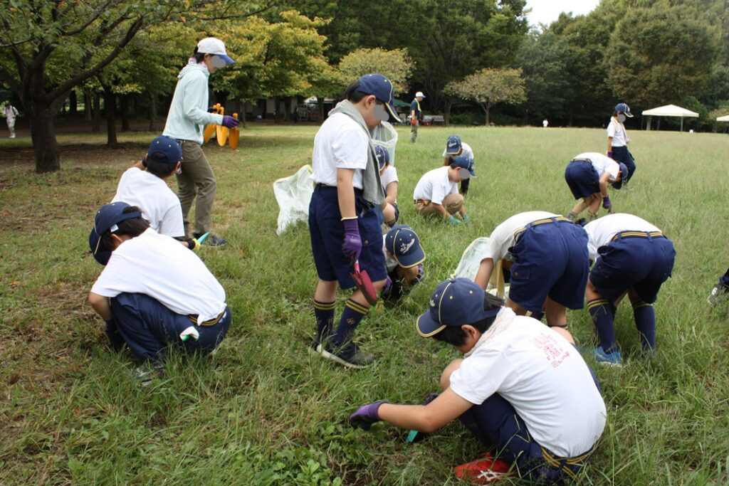 「カブスカウトは、残すのは足あとのみ」を実践するため、小さなゴミも見逃さないよう、慎重にゴミ拾いをしました。